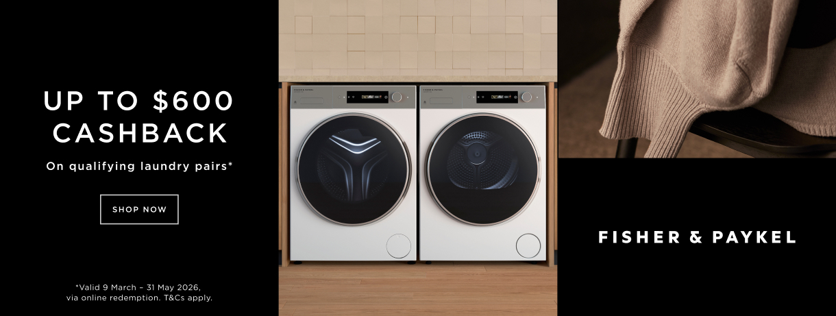 Purchase a qualifying Heat Pump Dryer and Washing Machine pair between 9 March to 31 May 2026 and receive up to $600 Cashback.